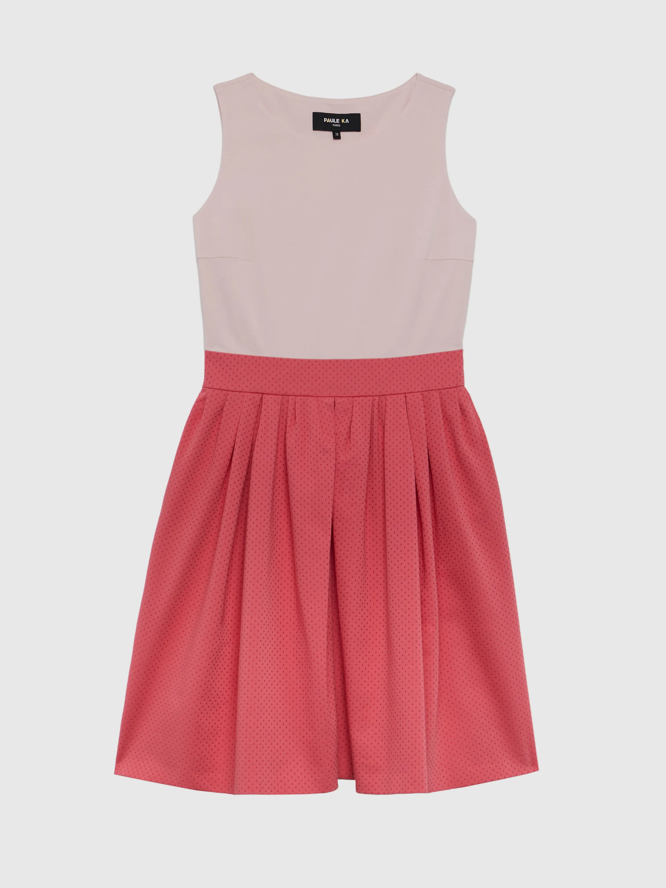 La Robe Estivale Se Dessine En Trompe-L’Oeil. En Effet, Le Top Sans Manches En Jersey De Coton Semble Rentre Dans Un Jupon Volumineux. La Partie Jupe Du Modele Est Confectionnee En Jacquard Plumetis Et Structuree Par Une Ceinture Plate Sous Laquelle S’Esquisse Une Jeu De Plis Creux. Le Resultat Elegant Et Feminin Est Sans Equivoque. Confection Soyeuse Et Fluide En Coton Et Viscose. Fermeture Zippee Sur Le Cote Et Poches Invisibles. La Longueur De La Robe A Partir De La Taille Est De 55 Cm.