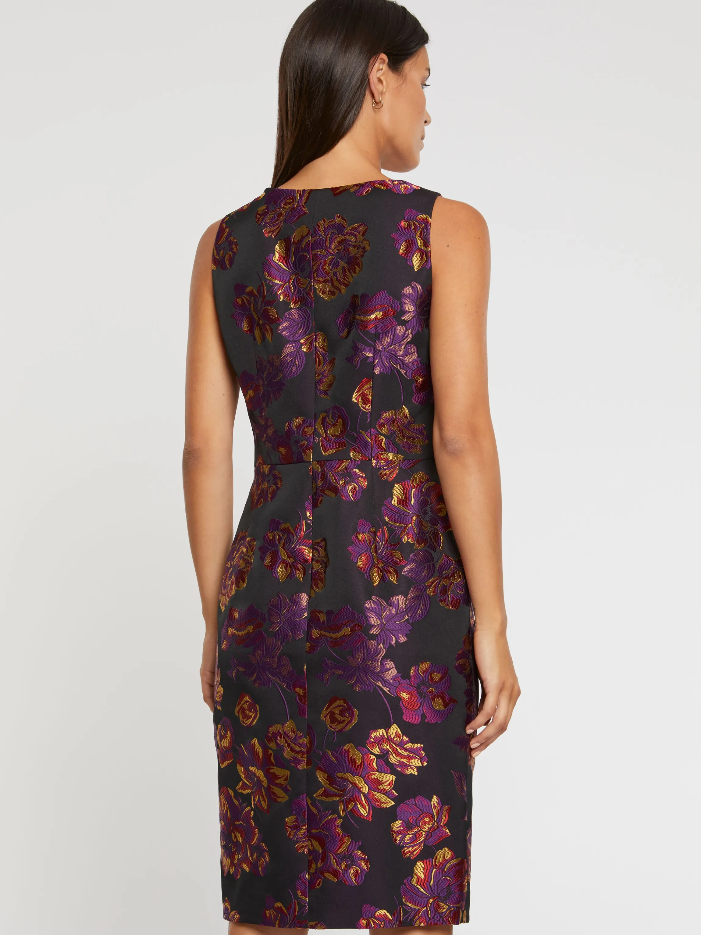 La Robe De Ceremonie S’Esquisse Dans Un Jacquard De Fleurs Naturellement Brillant. Sa Coupe Droite, Sans Manches A Col R…