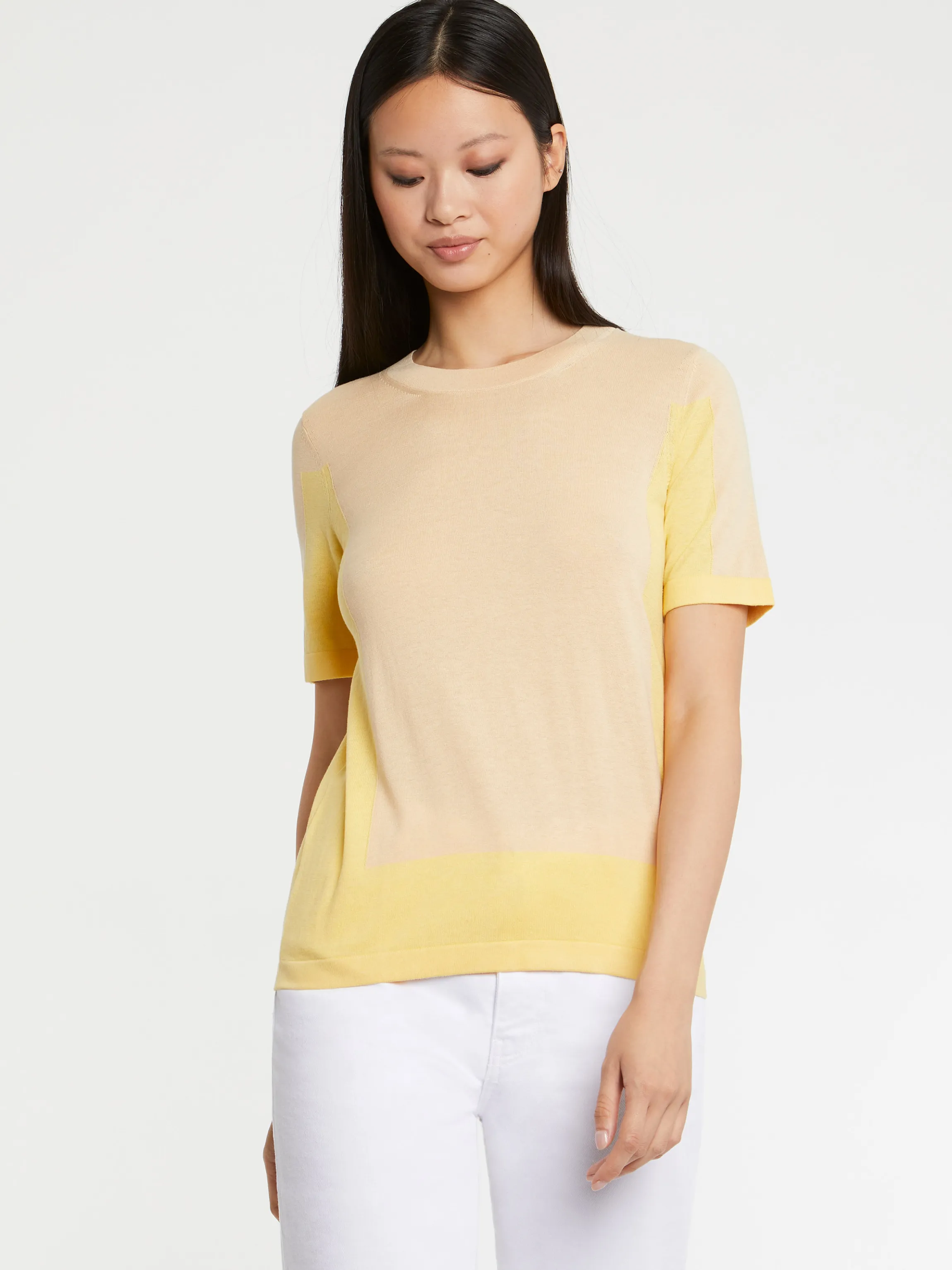-Pull En Soie Et Coton-Jeu Bicolore Contrastant-Col Rond-Manches Courtes-A Porter Seul Ou En Twin-Set