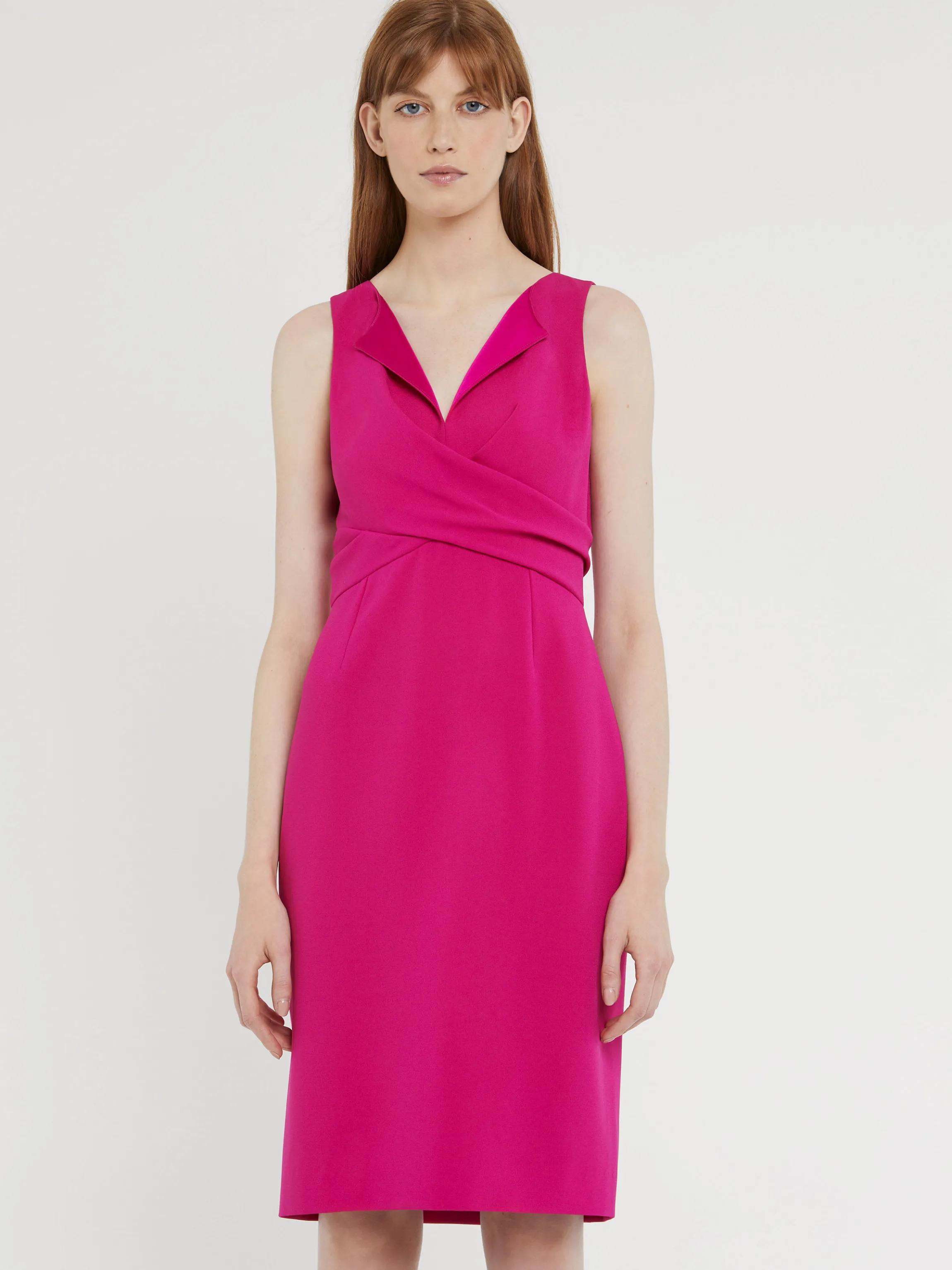 La Robe Courte En Crepe Envers Satin Est Parfaitement Adaptee Aux Grandes Occasions. Aussi Glamour Qu’Elegante, Elle Prend Forme Dans Une Coupe Ajustee Sans Manches Qui Souligne Votre Silhouette. Le Decollete En V S’Esquisse Dans Un Plisse Croise Sur La Poitrine Et Avant De Se Rejoindre Dans Le Dos A Hauteur De Taille. Fermeture Eclair Invisible Dans Le Dos. La Longueur A Partir De La Taille Est De 60 Cm.
