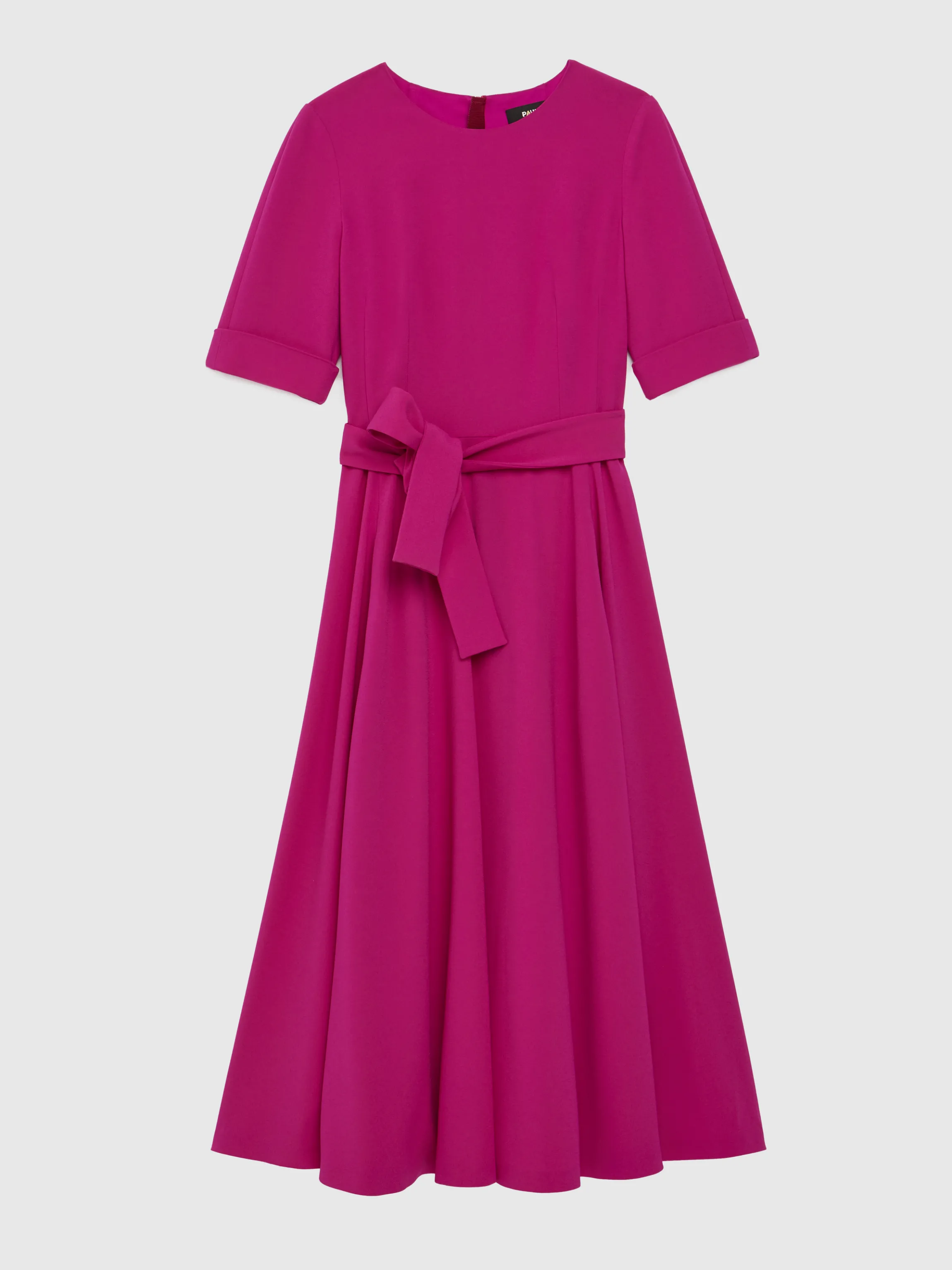 Store Robe Midi Ceinturee En Crepe Envers Satin Femme Robes