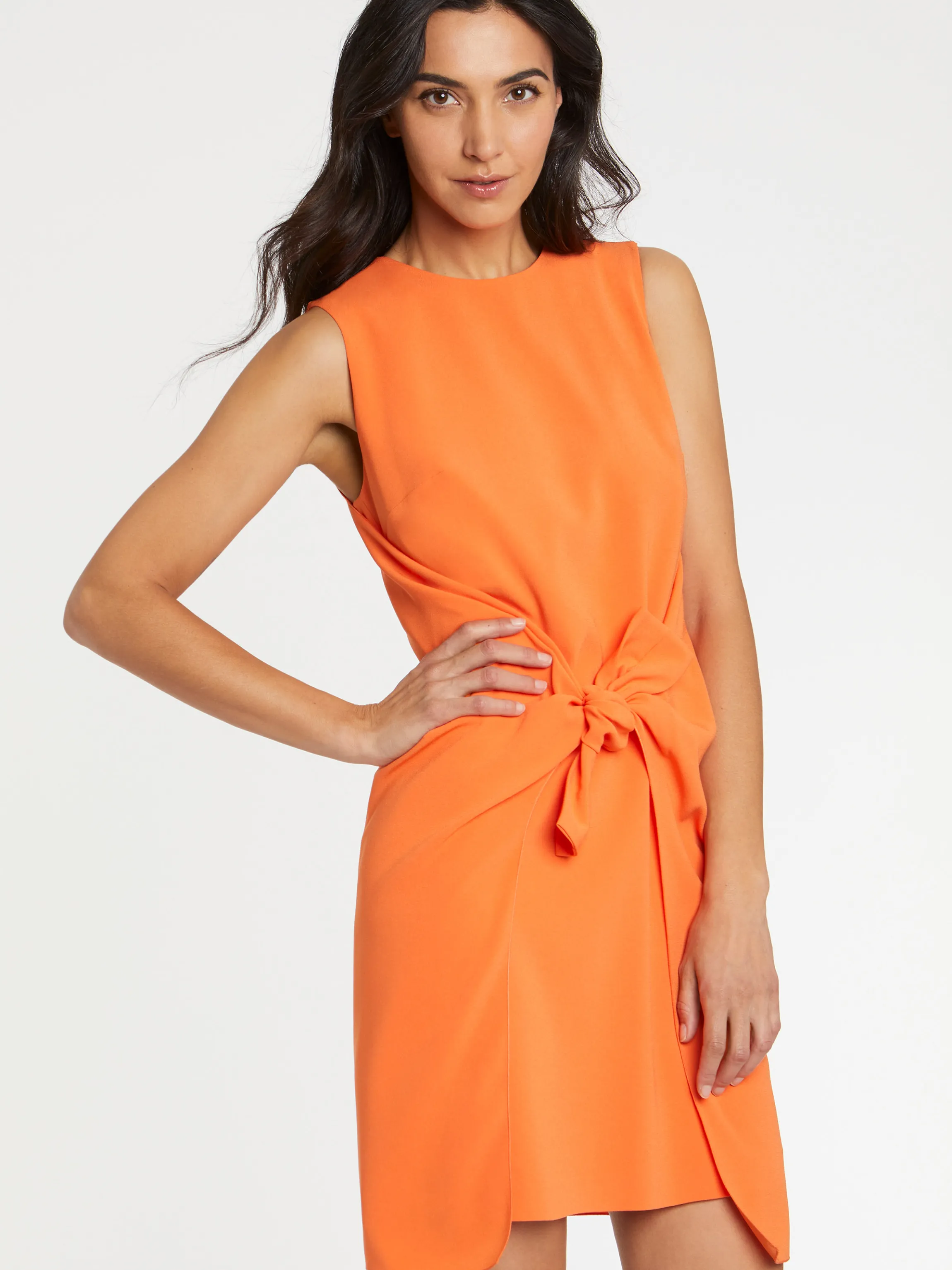 Le Noeud Fait Tout. La Robe De Ceremonie En Crepe Envers Satin Arbore Une Coupe Droite, Courte, Sans Manches Ni Col. Sa …