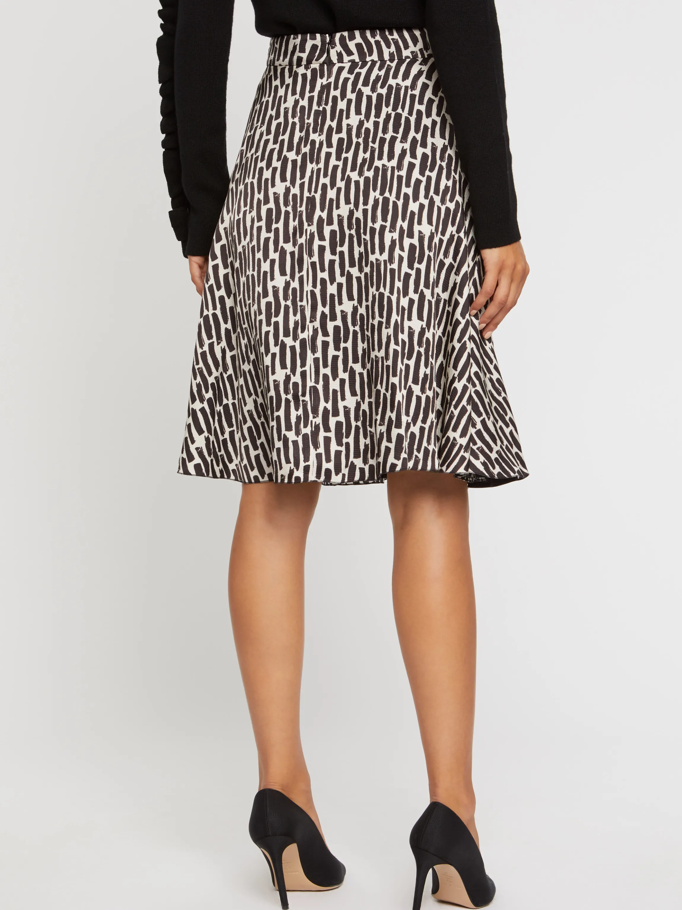 La Jupe Midi Marquee A La Taille Haute S’Inspire De La Feminite Des Jupes Patineuses. Sa Legerete Et Son Joli Volume Evase Sont Facilites Par La Confection Satinee En Viscose Martelee. Vous Apprecierez L’Imprime Coups De Pinceau Qui Apporte Une Note Graphique Et Pointue Au Modele Bicolore. Longueur 60 Cm.