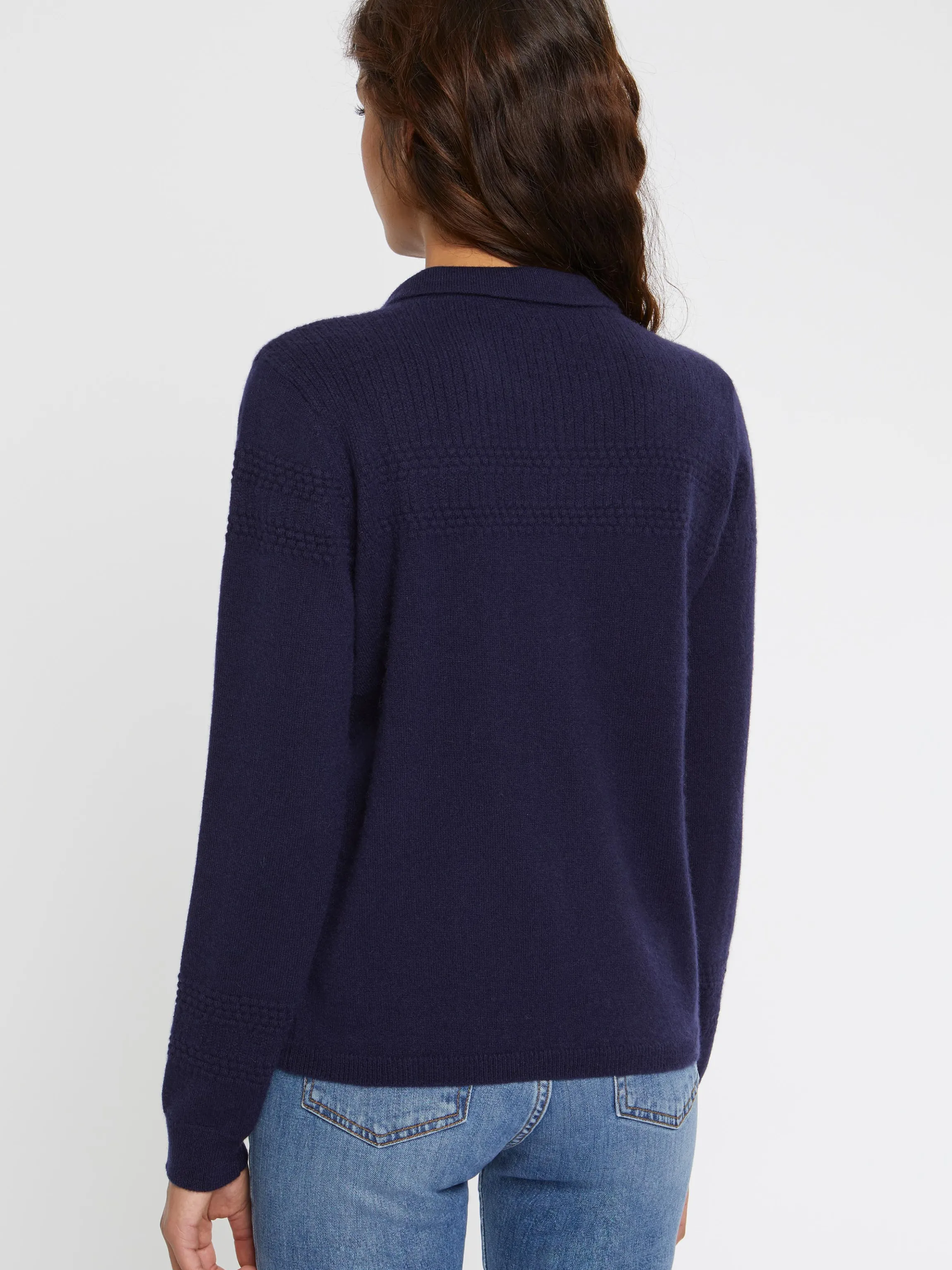 Le Pull En 100% Cachemire A Un Petit Cote Sage Resolument Seduisant. Confectionne En Tricot Fin, Il Alterne Maille Cotelee Et Points Boules Dans Le Haut Du Vetement Et Aux Poignets. Il Est Dote D’Un Petit Col Polo En Maille Qui Respecte Le Dresscode Sport-Chic. Un Vetement Facile Et Elegant Que Vous Porterez En Tout Occasion.