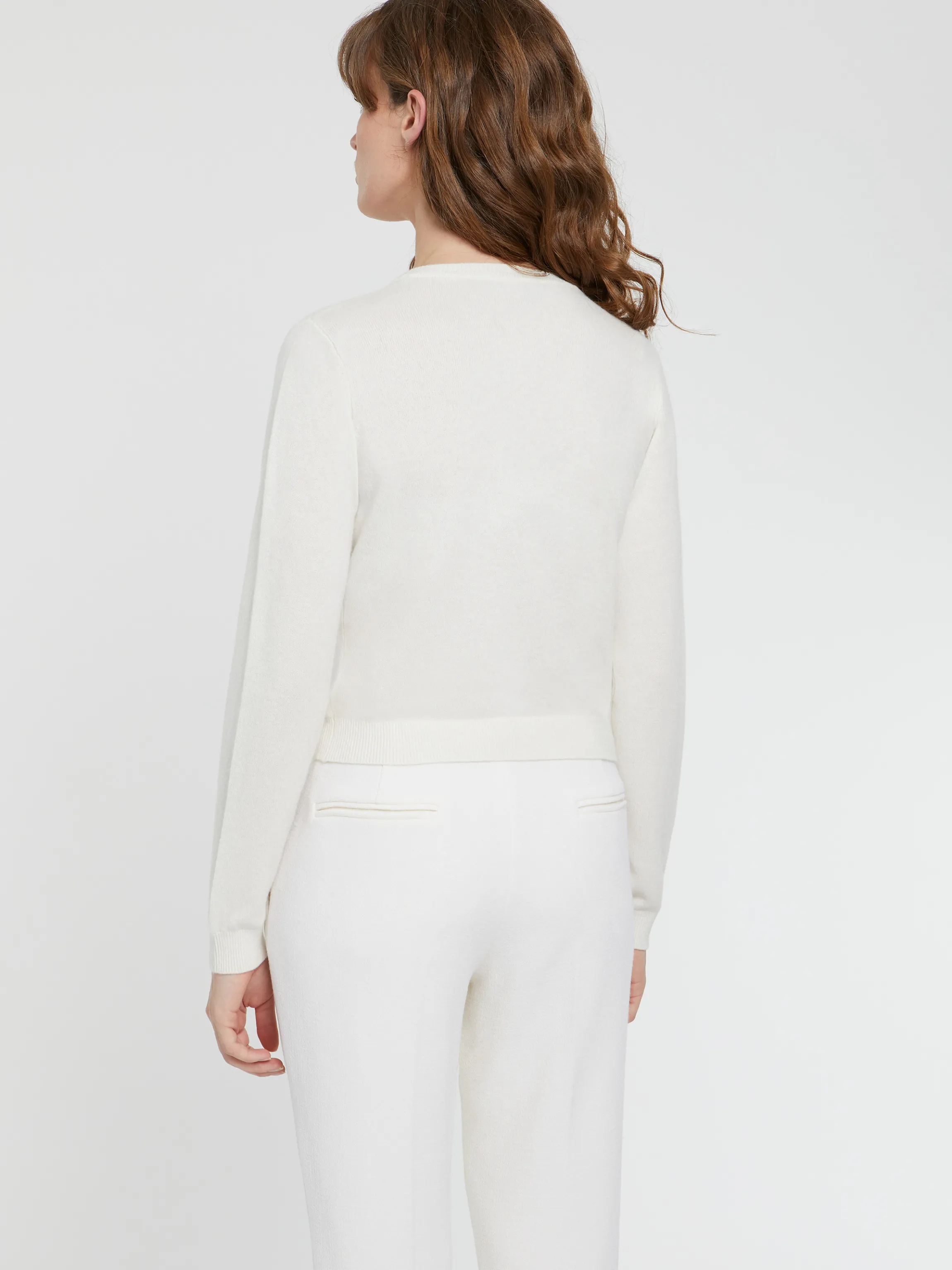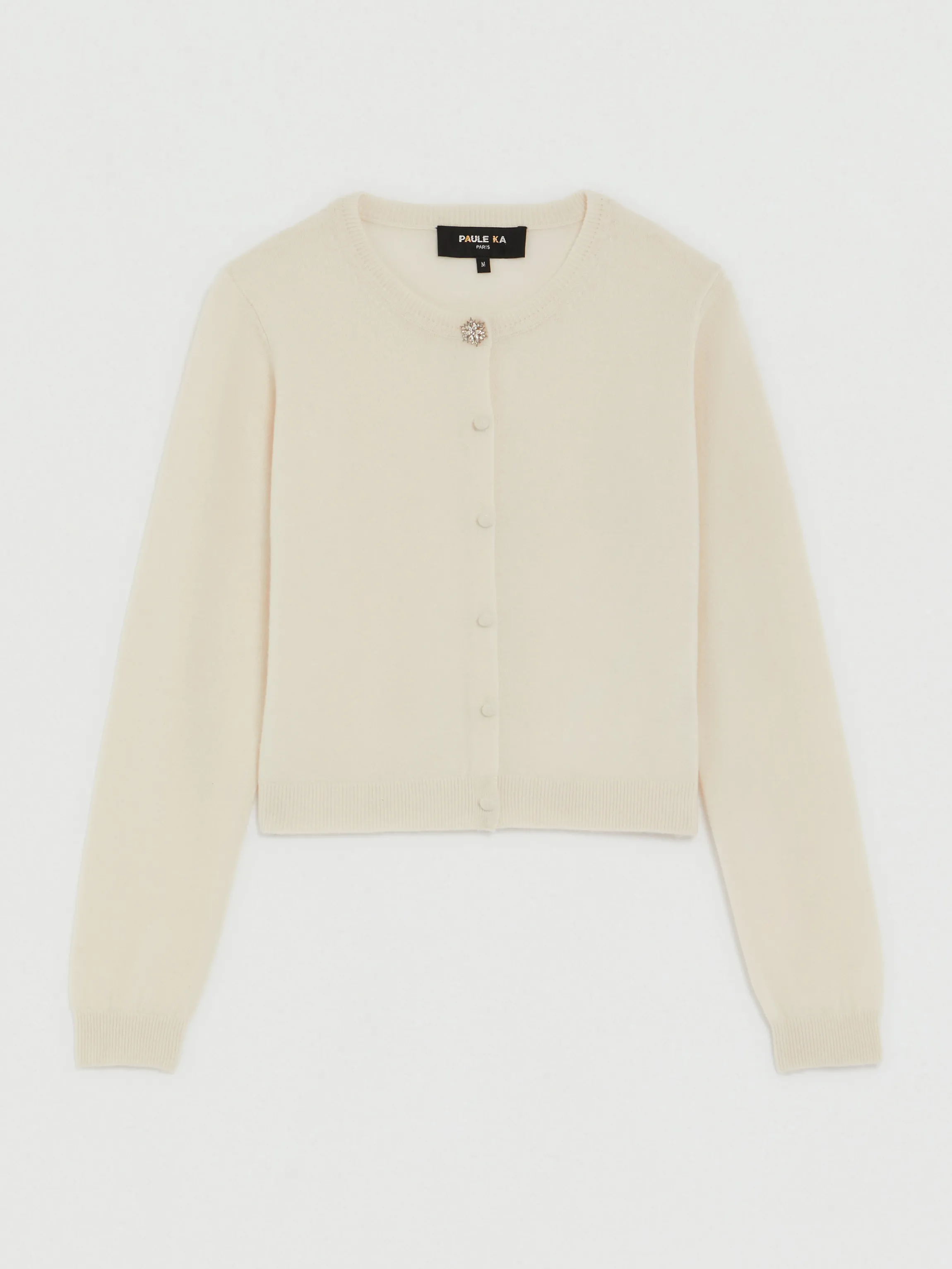 Le Gilet En Cachemire Adopte Une Coupe Courte Structuree Par Des Bords-Cotes. Il Est Dote D’Un Col Rond Et De Manches Raccourcies. La Fermeture A Pressions S’Orne De Boutons Recouverts Decoratifs Tandis Qu?Au Col Un Superbe Bouton Bijou Reflete L’Esprit Bcbg.