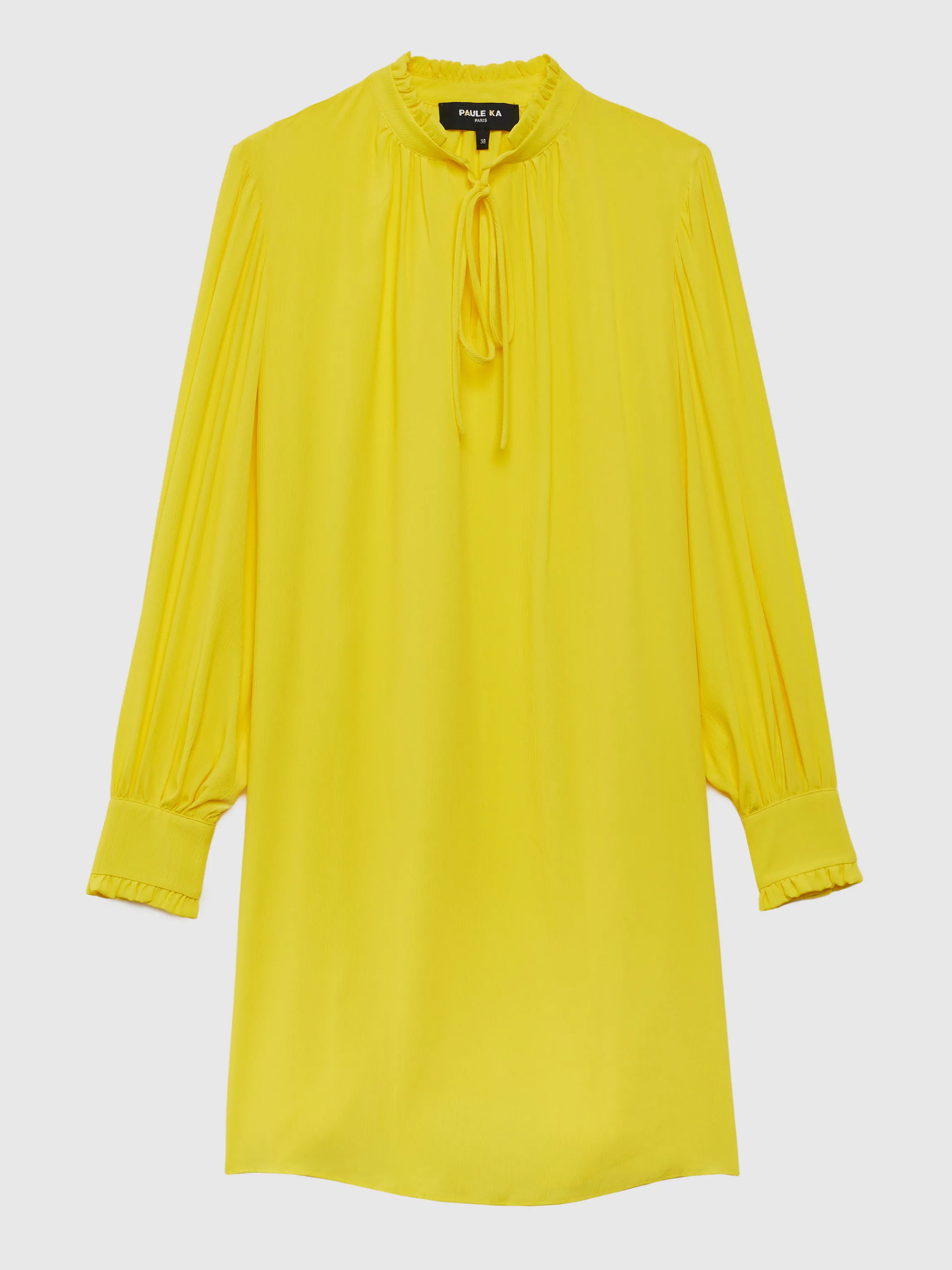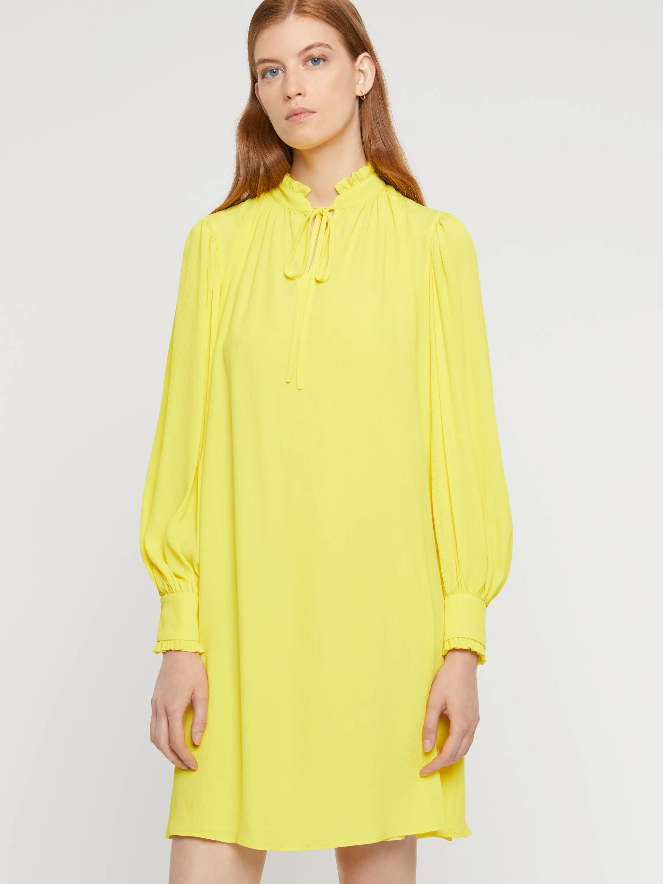 La Robe Estivale Est Confectionnee En Crepon De Soie Et Acetate Et Promet Un Porter Fluide, Souple Et Soyeux. Dotee D’Un Petit Col Montant, De Larges Poignets Resserres A Volants Plats Et De Grandes Manches Plissees, La Robe D’Inspiration Victorienne Offre Une Allure Sage Et Ravissante A Souhait. Longueur A Partir De La Taille : 55 Cm.