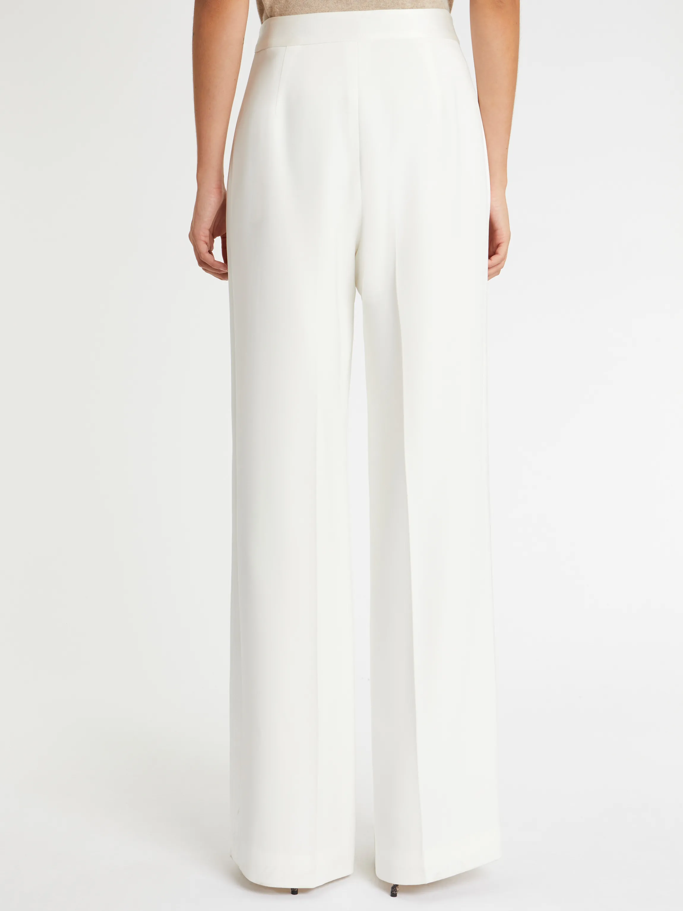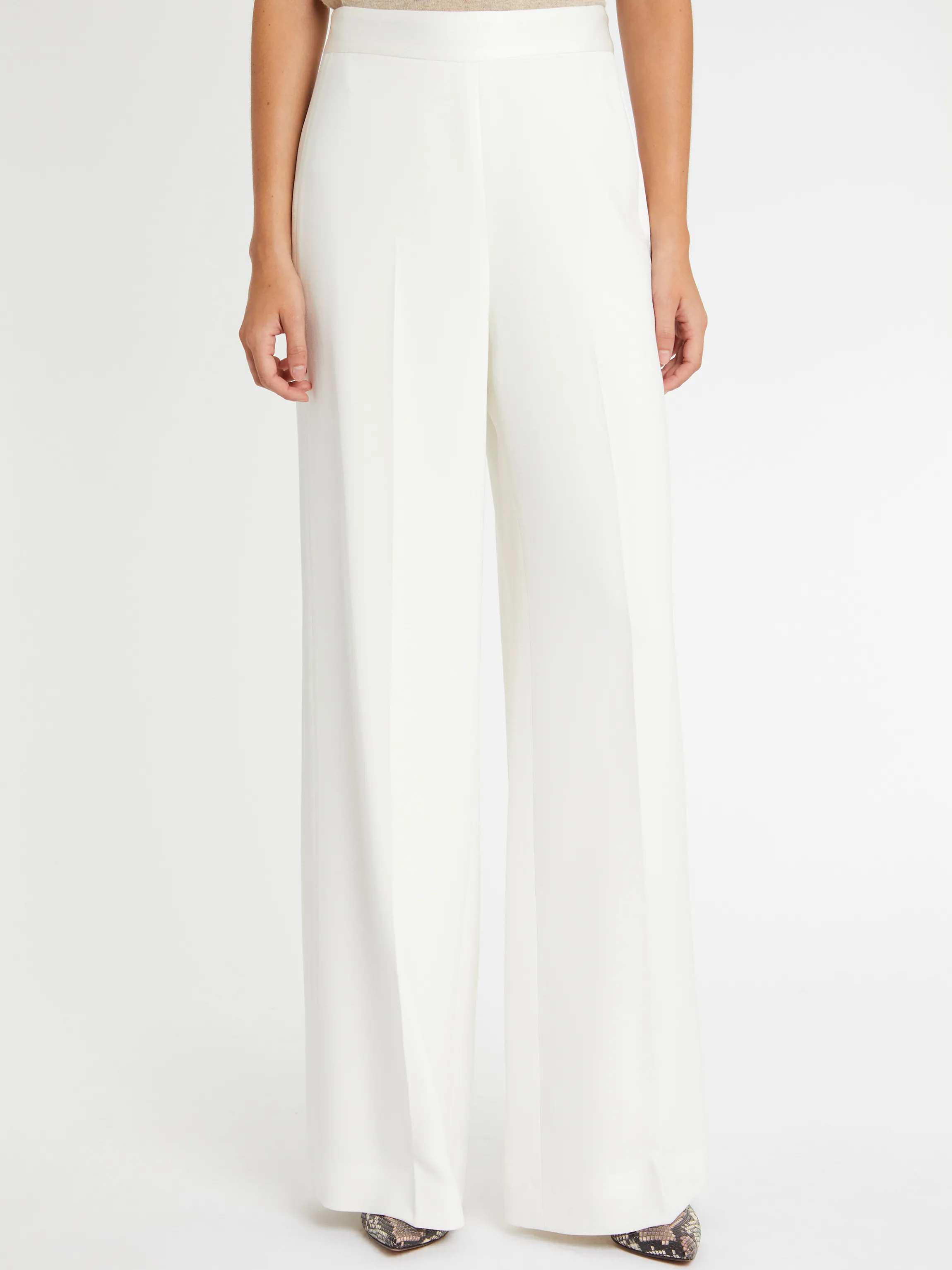 Le Pantalon Ample Et Fluide Est Realise Dans Une Coupe Epuree Sans Poche Ni Bouton De Fermeture. Essentiel Du Vestiaire De Ceremonie, Ce Pantalon En Crepe Envers Satin Affiche Le Cote Mat Du Tissu. Au Niveau De La Ceinture Plate Et Sous Forme De Bandes Cote Le Long De La Jambe, Le Satin Brillant Sublime Le Modele D’Une Note Chic Et Glamour. Fermeture Eclair Cote Invisible.