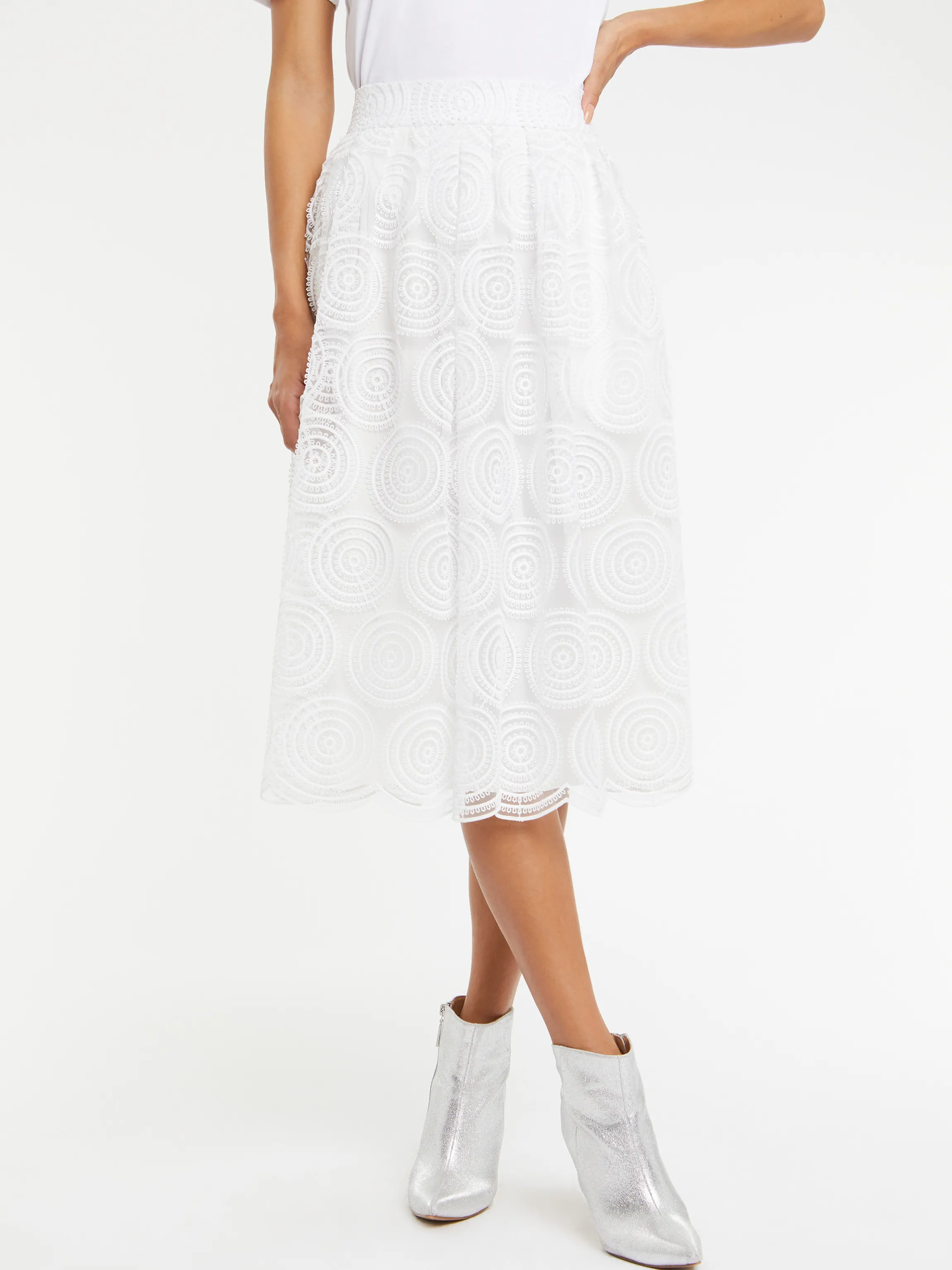 -Jupe Midi Plisee En Tulle BrodeLongueur A Partir De La Taille : 70Cm