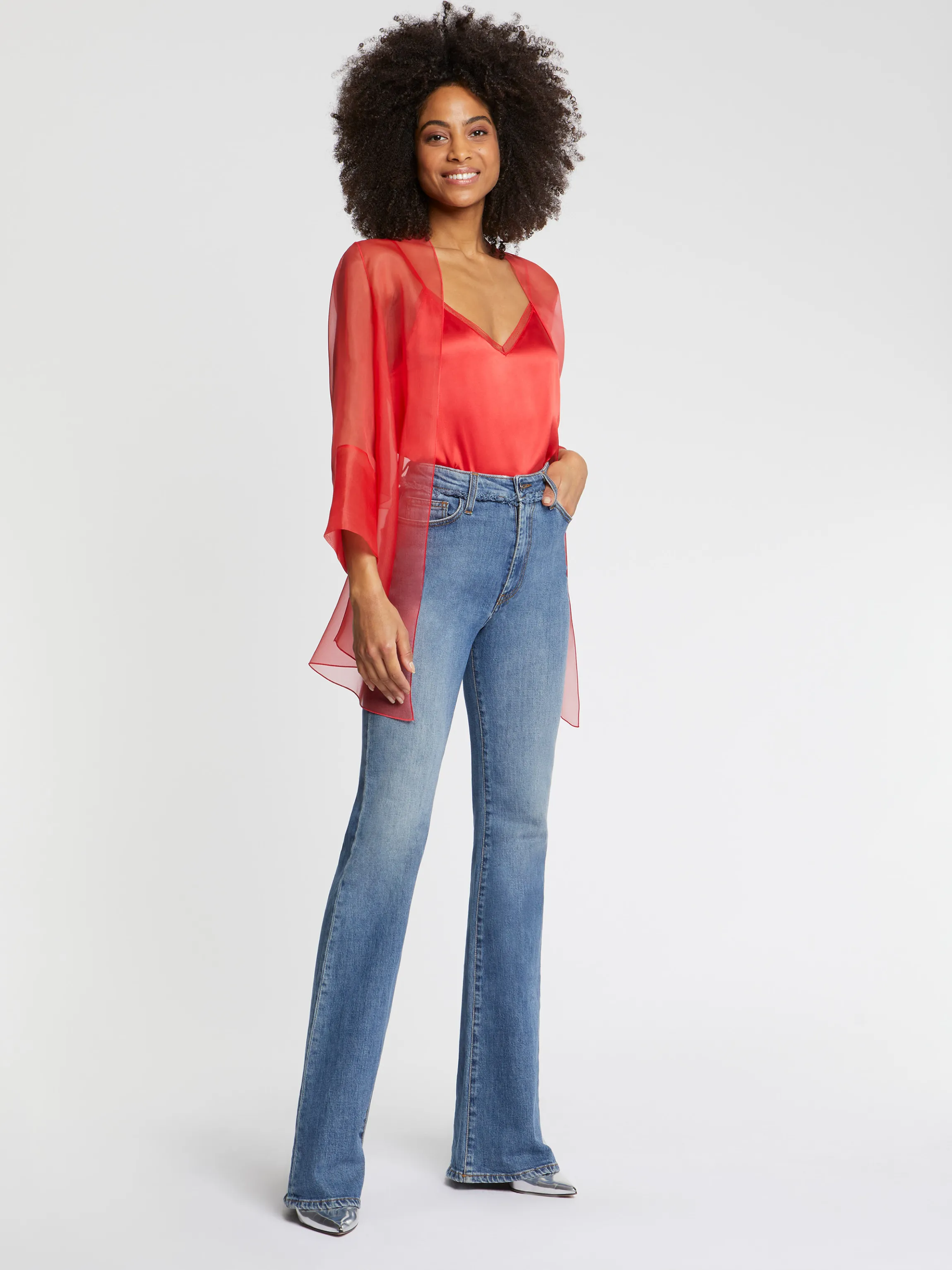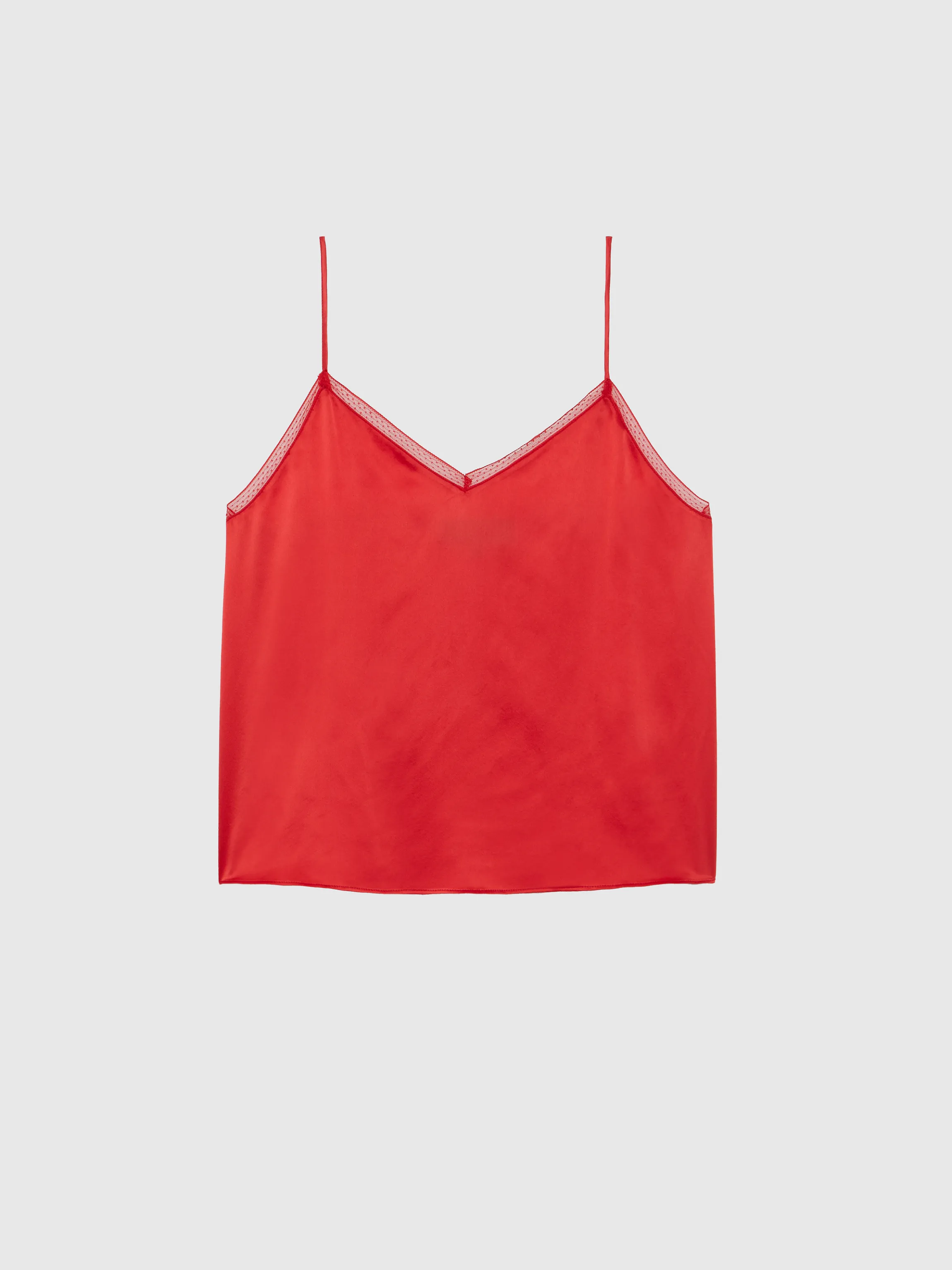 Le Caraco En Satin De Soie Est Leger, Doux Et Resolument Glamour. Sa Ligne Tres Echancree Sur Les Cotes Est Dotee De Toute Fines Bretelles Spaghettis Et D’Un Decollete En V Borde D’Une Delicate Dentelle. Piece Phare De La Tendance Dessus-Dessous, Le Top Aux Allures De Sous-Vetement Se Fait Sophistique Sous Une Veste De Bureau Le Jour Ou Sulfureux Sur Une Jupe Fendue Le Soir. Une Piece Affriolante Et Resolument Desirable.