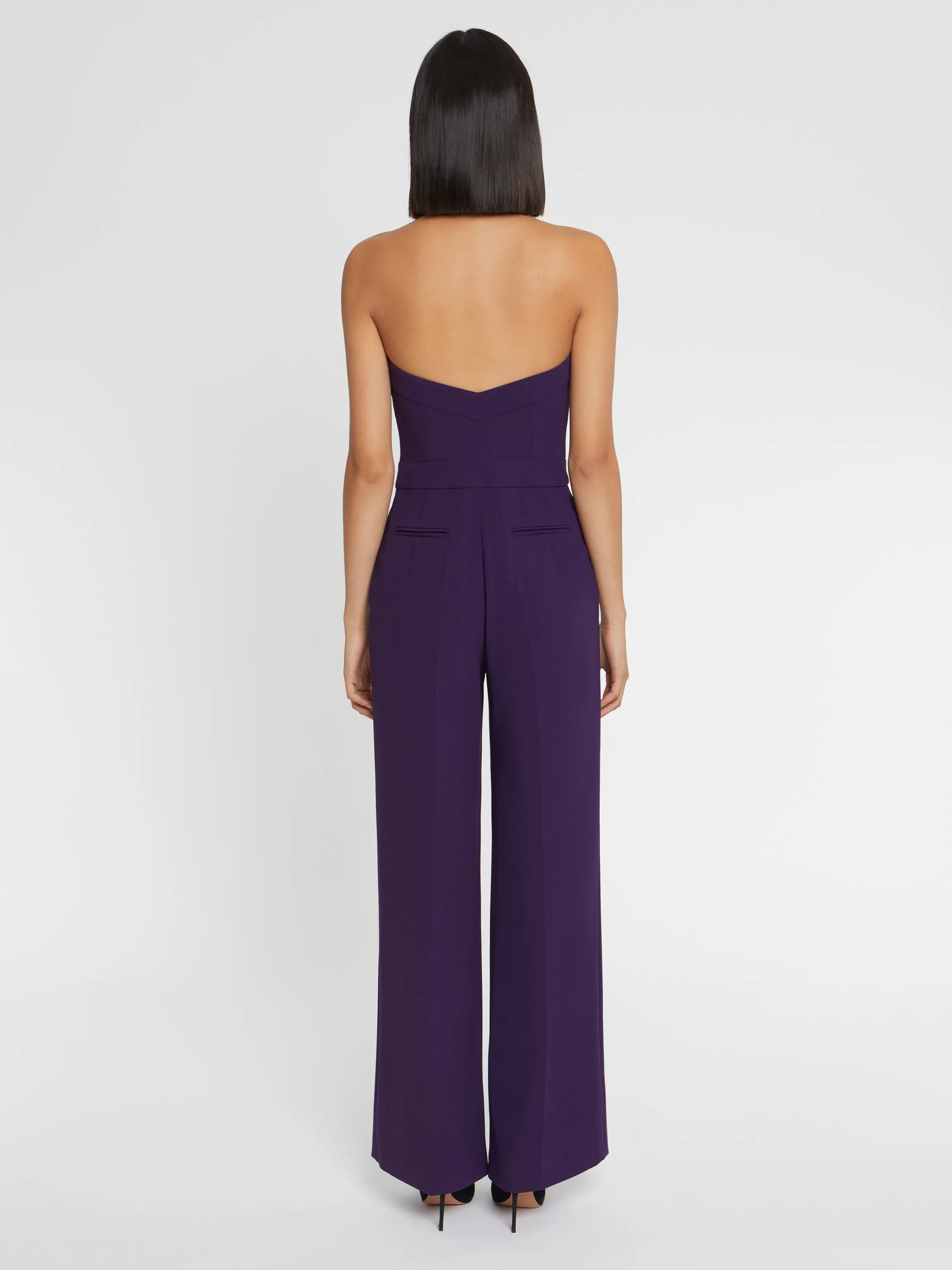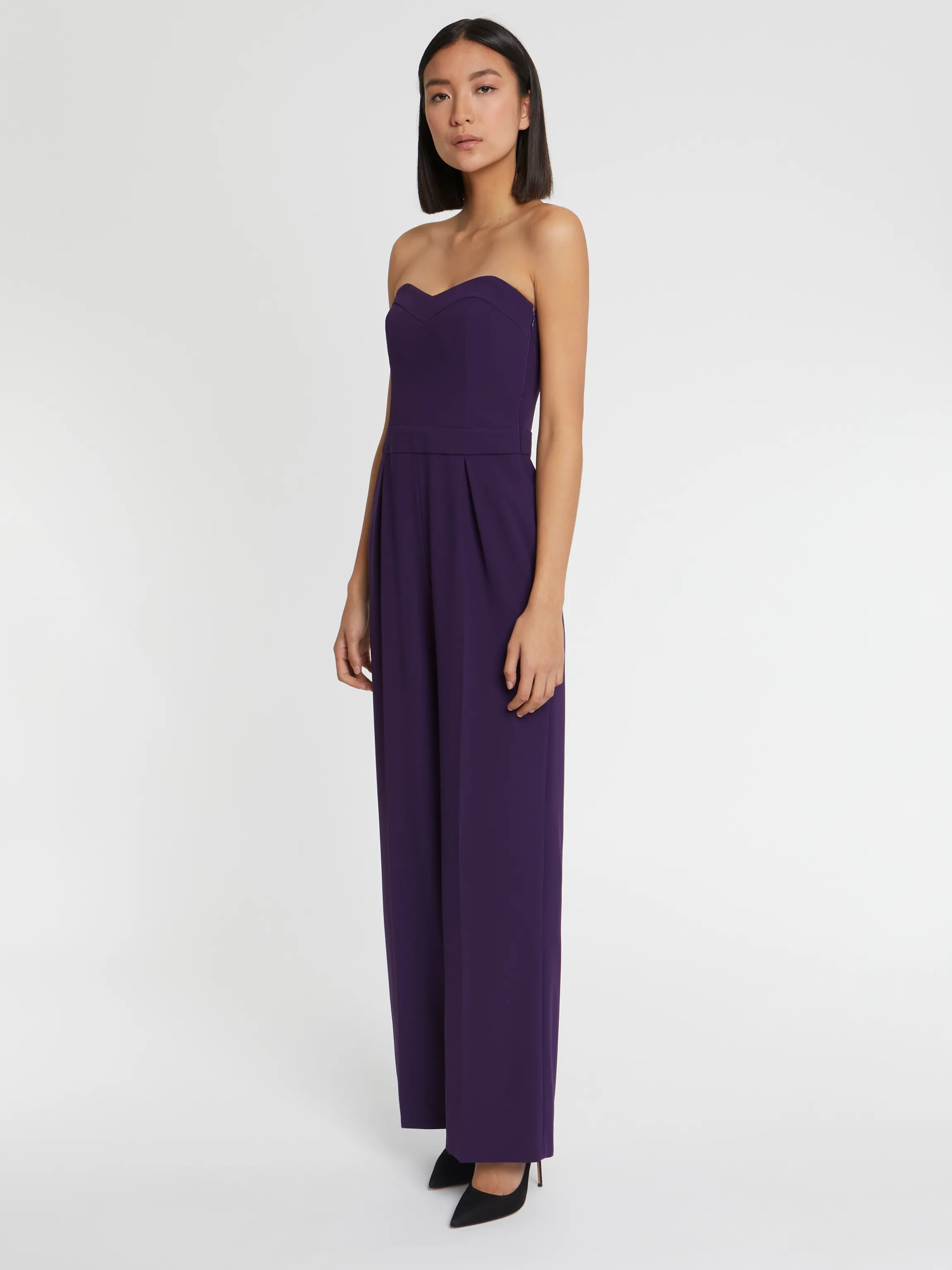La Combinaison Longue Se Decouvre Dans Une Version Ceremonie. Elle Est Confectionnee En Crepe Envers Satin Et Se Dessine Dans Une Coupe Bustier En Forme De Coeur. Sous La Taille Marquee D’Une Ceinture Incrustee, Deux Grands Plis Creux Offrent Un Joli Mouvement Au Pantalon Large. Poches Dans La Couture, Poches Arriere Passepoilees Et Zip Invisible Sur Le Cote Structurent Le Modele.