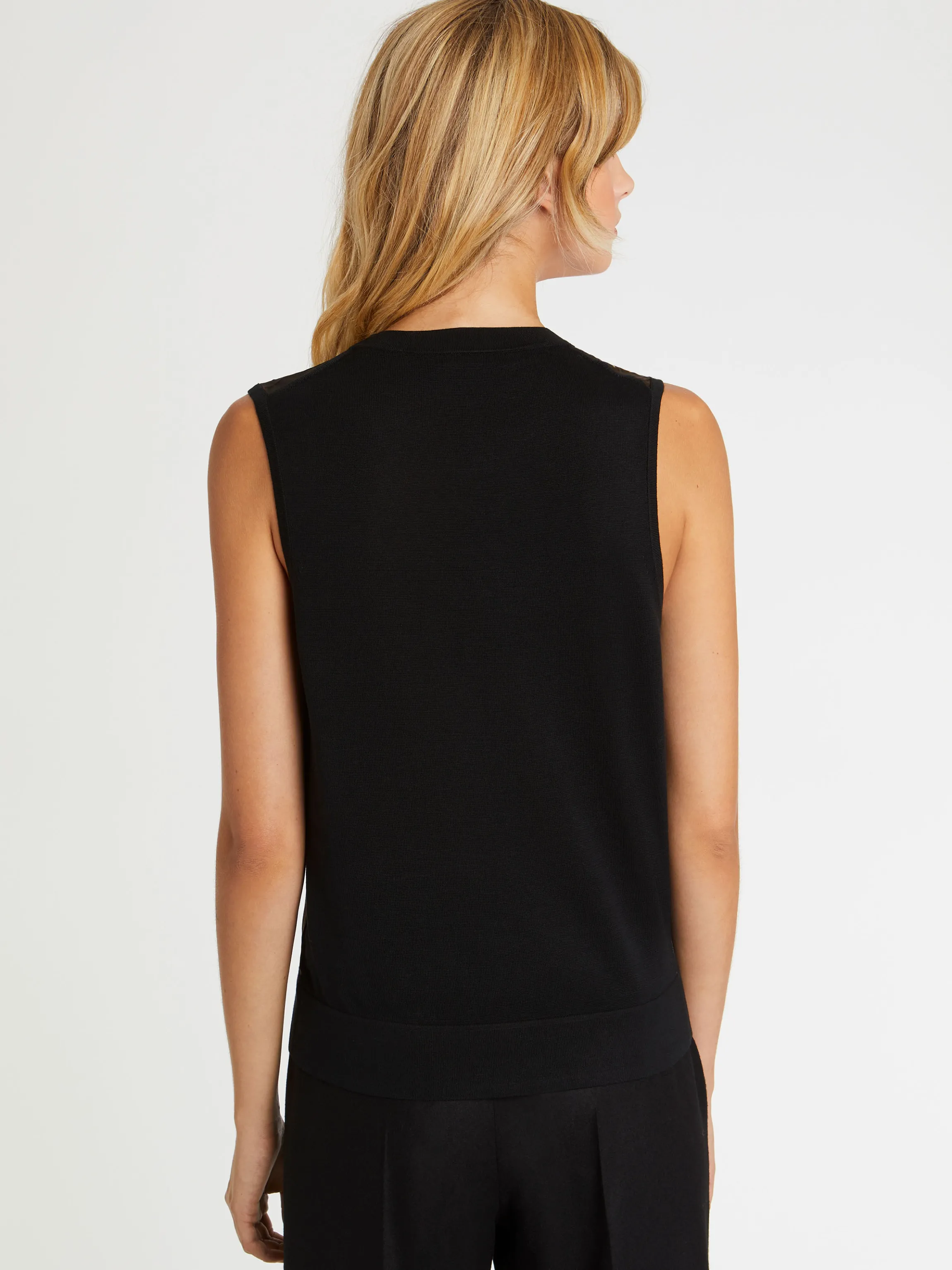 Le Debardeur En Viscose Et Soie Melangee Est Structure Par Un Col Rond Et Des Bords-Cotes Contrastes. Le Dos En Maille E…
