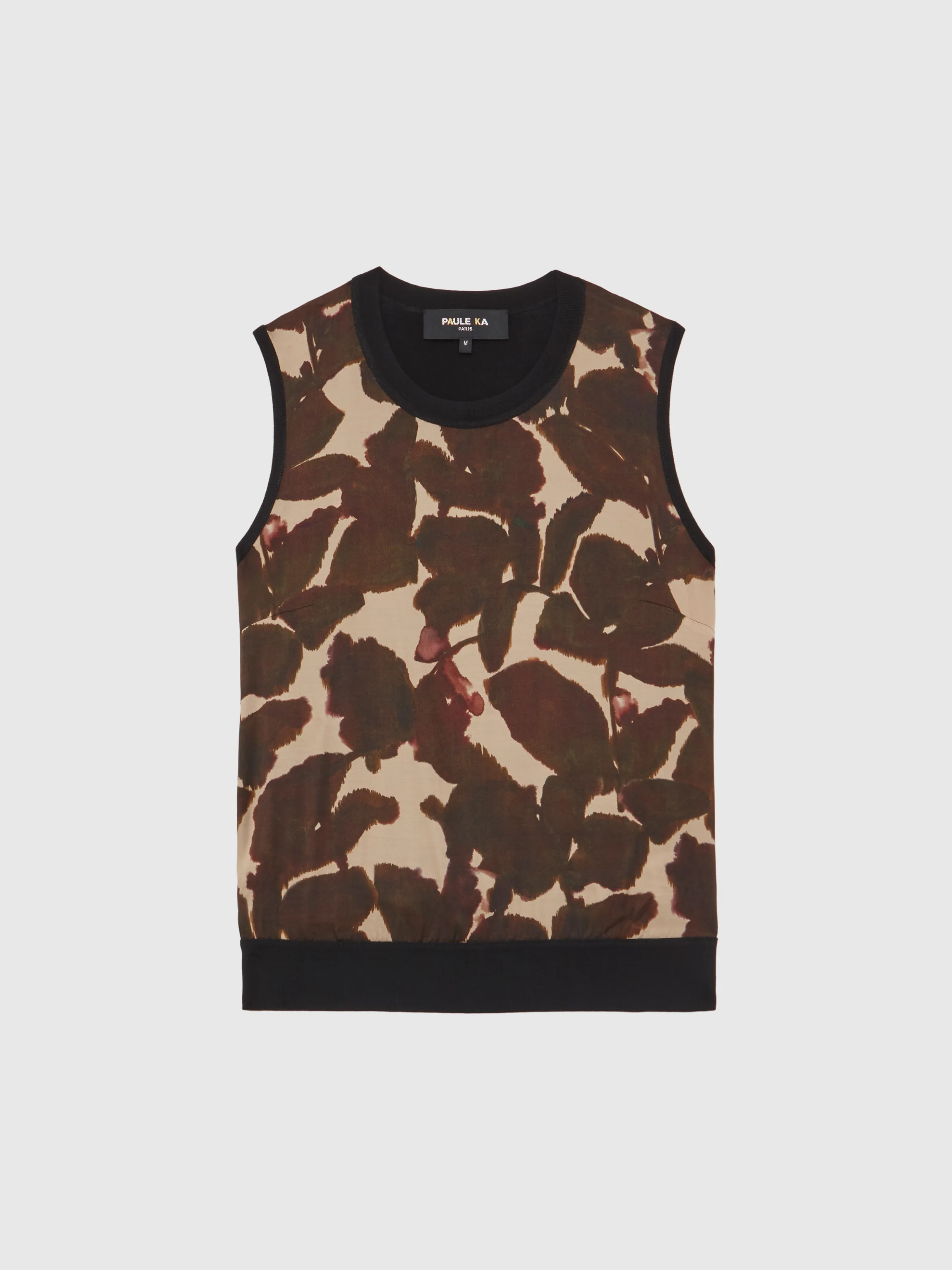 Store Debardeur Camouflage En Viscose Et Soie Femme Tops