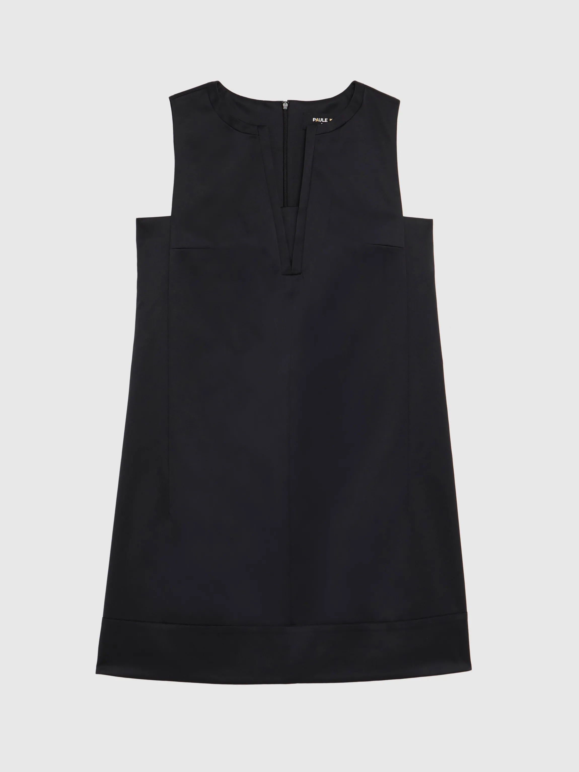 La Robe Courte Sans Manches Coupe Trapeze Arbore Un Decollete Graphique Qui Caracterise Le Modele Couture. La Confection…